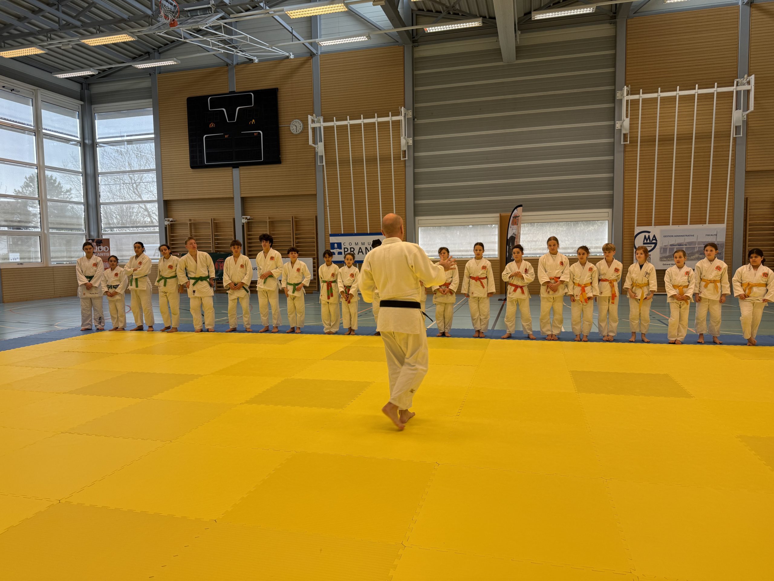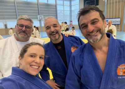 Début de la journée de l’entraînement compétition avec aux côtés des judokates et judokas nos moniteurs BSA François, Jean-Pierre, Antony et Céline.